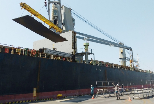 お客様のご要望により、港湾内にて貨物の船積み、陸揚げを行っています。 主に、鋼材や石炭等の鉱物を取り扱っています。